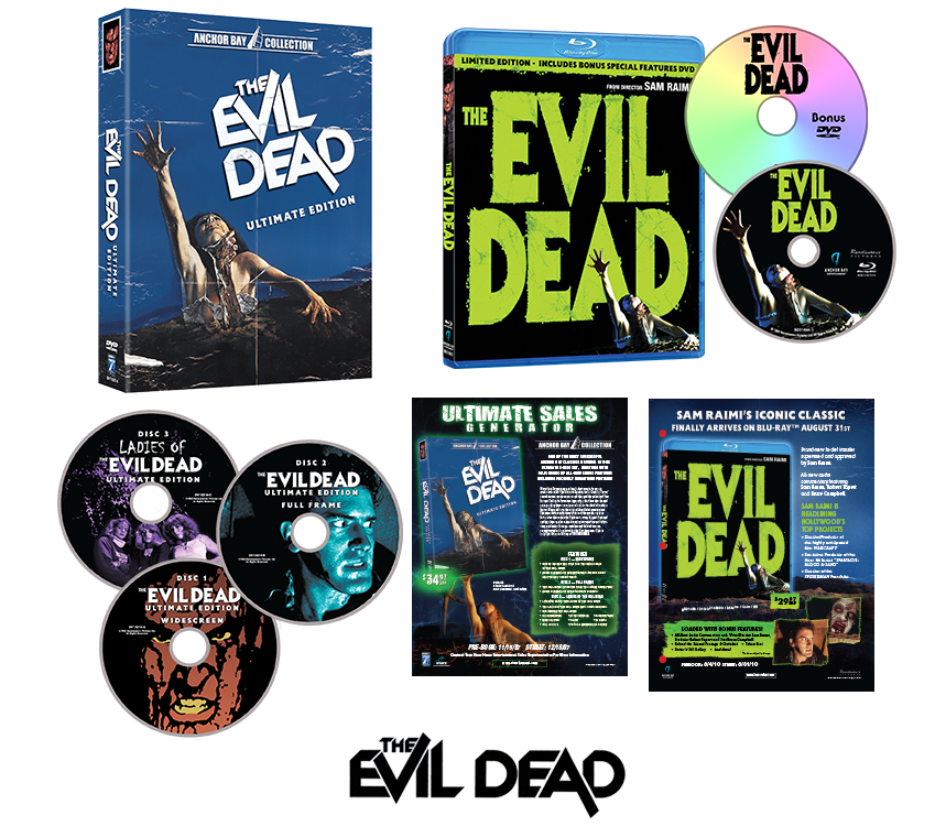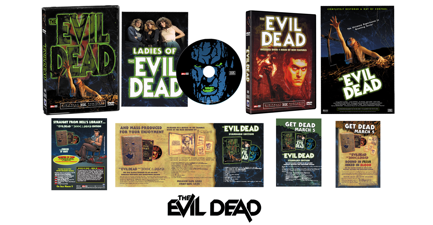 My association with The Evil Dead spans nearly my entire career at Anchor Bay. It began in 2001, with the release of The Evil Dead: The Book of the Dead. Anchor Bay had previously released The Evil Dead on VHS and DVD, with collectible cases & multiple covers to some success. They had similar success with its two sequels Evil Dead II, and Army of Darkness, in regular and collectible (and even official bootleg) editions.