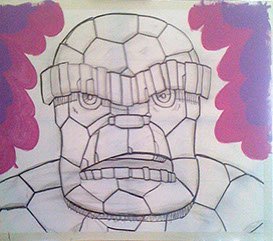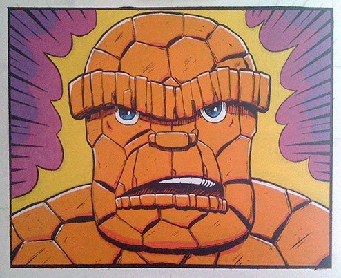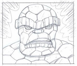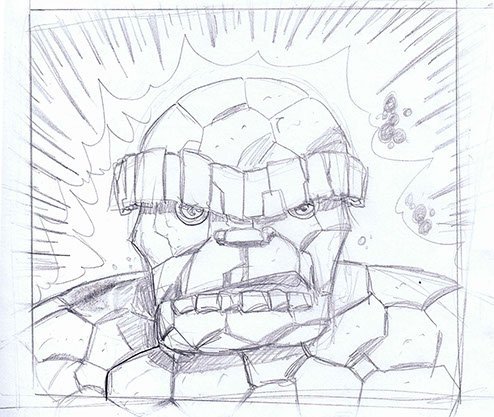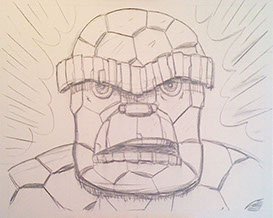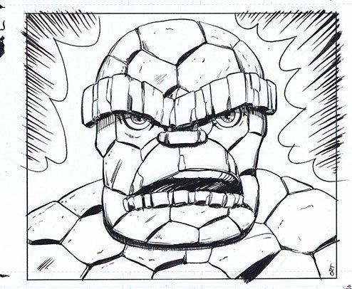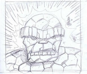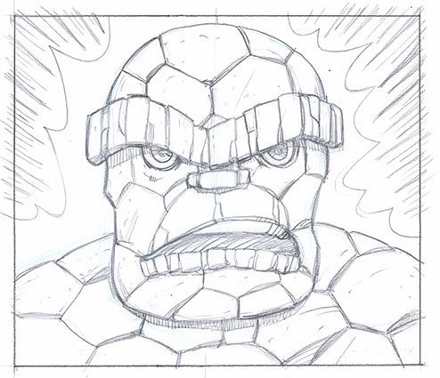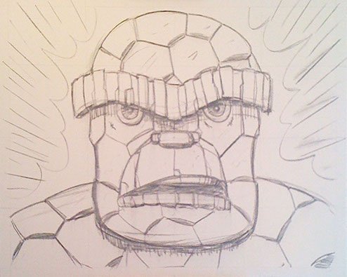 This was the first sketch for a huge, bold, colorful 4 foot wide Pop Art portrait of the Thing.