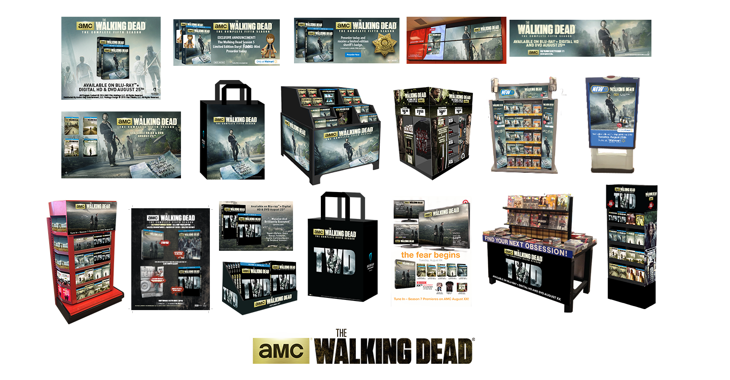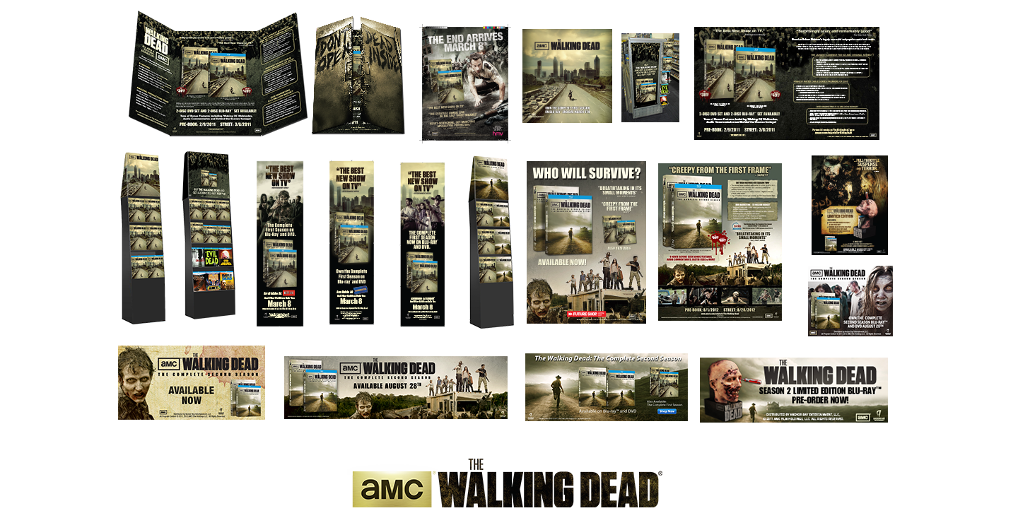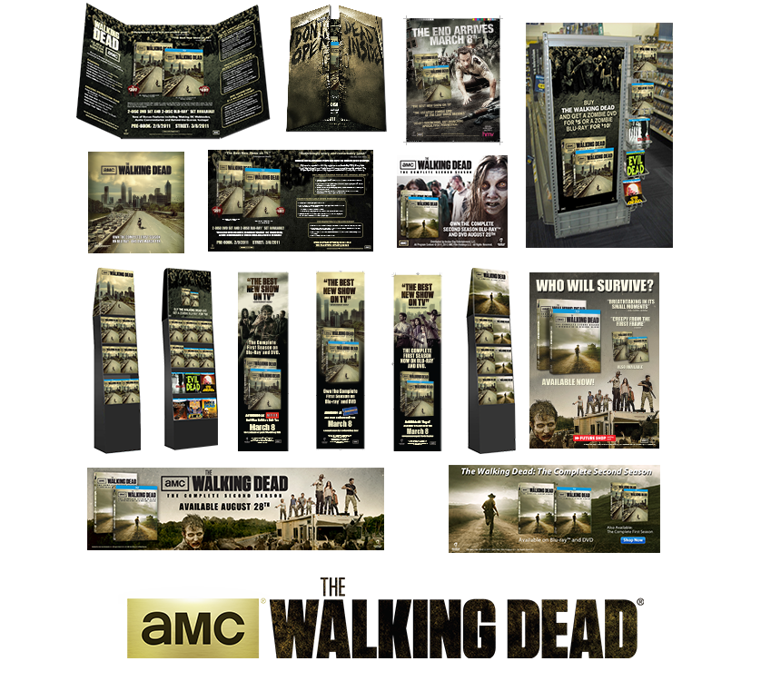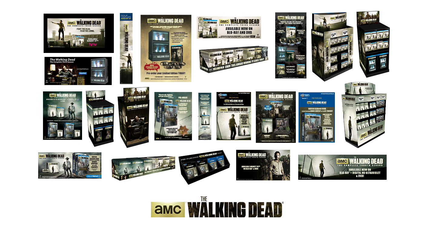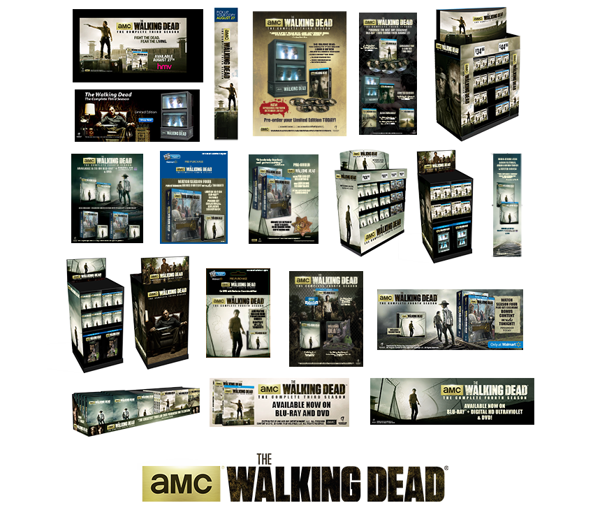 No one expected The Walking Dead to launch as big as it did, and this created a huge opportunity on home video, an opportunity Anchor Bay and our retail partners readily embraced. The packaging was supported by a host of creative projects at retail. Initially it was a pretty simple straightforward campaign, a flyer, trade & consumer ads, corrugate displays and some promotional opportunities. As time progressed and the show kept getting bigger, the opportunities especially at retail grew, as well as the overall marketing. There was more advertising, particularly web advertising, especially for the special edition targeted at the same hardcore fanbase buying toys, games, t-shirts and other merchandise in droves.
